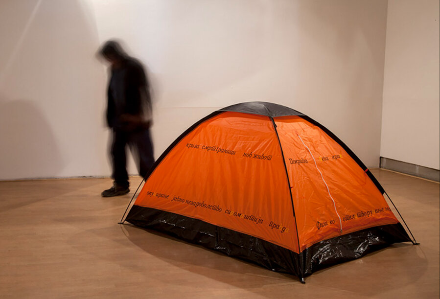Spomenik posvećen kraju 20. stoljeća i početku 21. stoljeća (s dvije nenamjerne ljudske pogreške) referira se na šatore kao simbole vremena u kojem živimo: šatori su nedvojbeno postali simboli anticivilizacije, ne samo nomadskog načina života nego i bilo kakve ekspresije nezadovoljstva i protesta. Živim blizu parlamenta, postavljanje šatora i prosvjedi koji uključuju šatore veoma su mi poznati, ali u periodu dok sam razmišljala o ovom radu, kada god bih putovala, šatori bi me na neki način pratili. Ispred vlada, ambasada... kao način izražavanja bijesa. Tu istu, 2016. godinu obilježio je početak Sirijske krize, a izbjegličke i migrantske krize bile su vrlo prisutne. Stoga se tekst ispisan na šatoru bavi ovim dvjema temama: šatorom kao simbolom onih koji su izmješteni, u kojem tekst sadržava zlatna slova koja formiraju riječ "no home" (bez doma), dok tekst na dnu, kroz riječi o ljudima koji prosvjeduju, formira riječi "human rights" (ljudska prava).